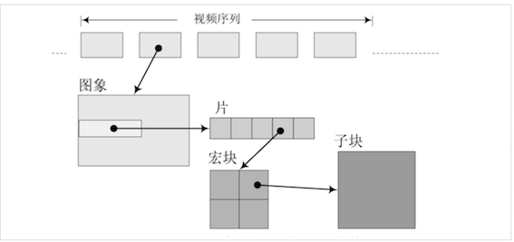 在 H.264 中,句法元素共被组织成 序列、图像、片、宏块、子宏块五个层次。