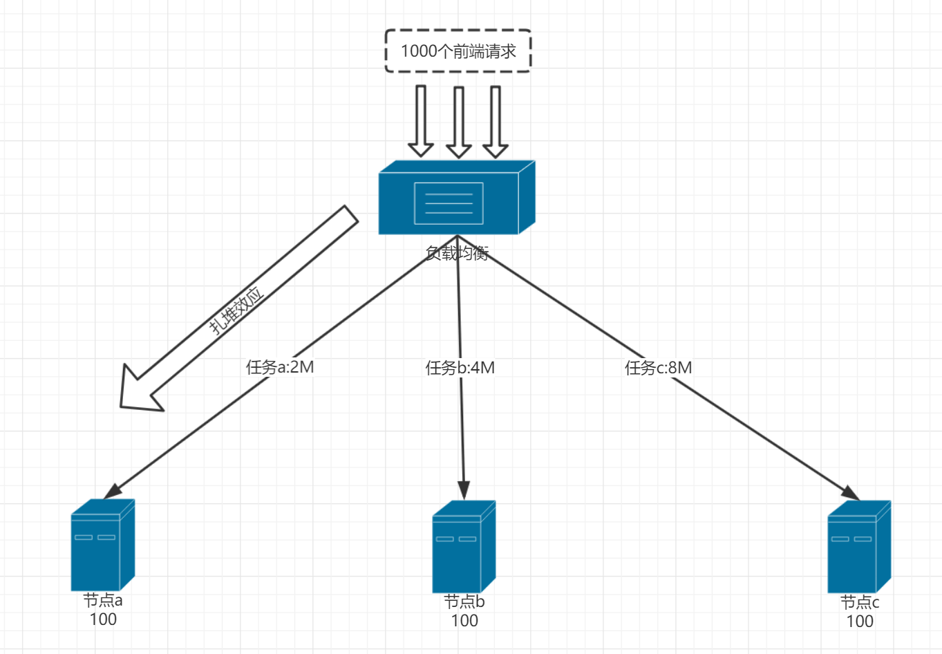 这样会存在一个极大的隐患。假设有1000个请求过来了。根据平均负载的算法得到节点a的负载最低。那么请求理应分发到节点a上,但是由于反馈过来的负载信息是存在延时的,于是在两三秒内得到的结果都是节点a负载最低,那么这1000个请求可能会全部被分发到节点a上。这种现象被称为扎堆效应。这种情况的结果就是节点a扛不住压力宕机。那么由此可见平均负载算法也不适用了。