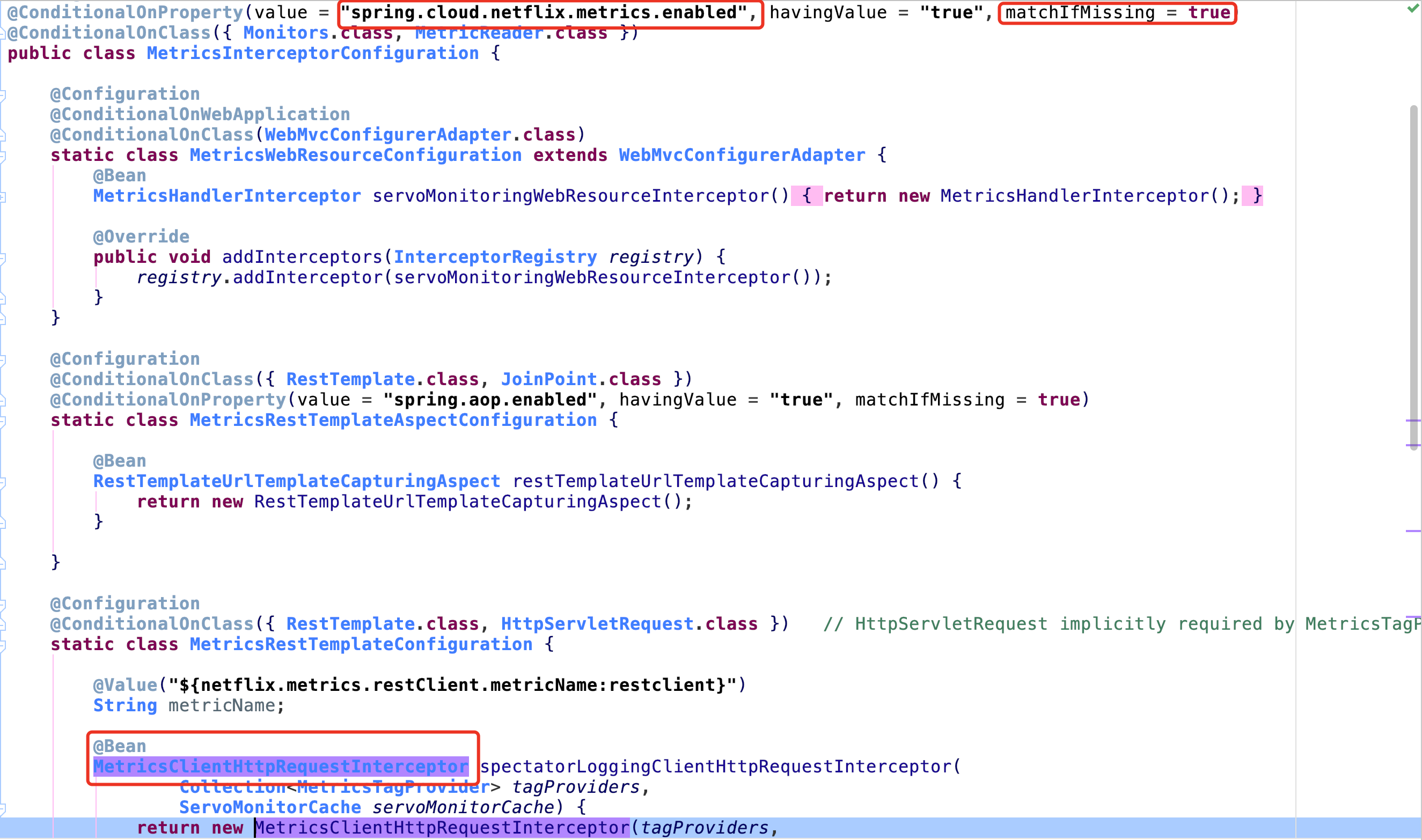 @ConditionalOnProperty(value = "spring.cloud.netflix.metrics.enabled", havingValue = "true", matchIfMissing = true)