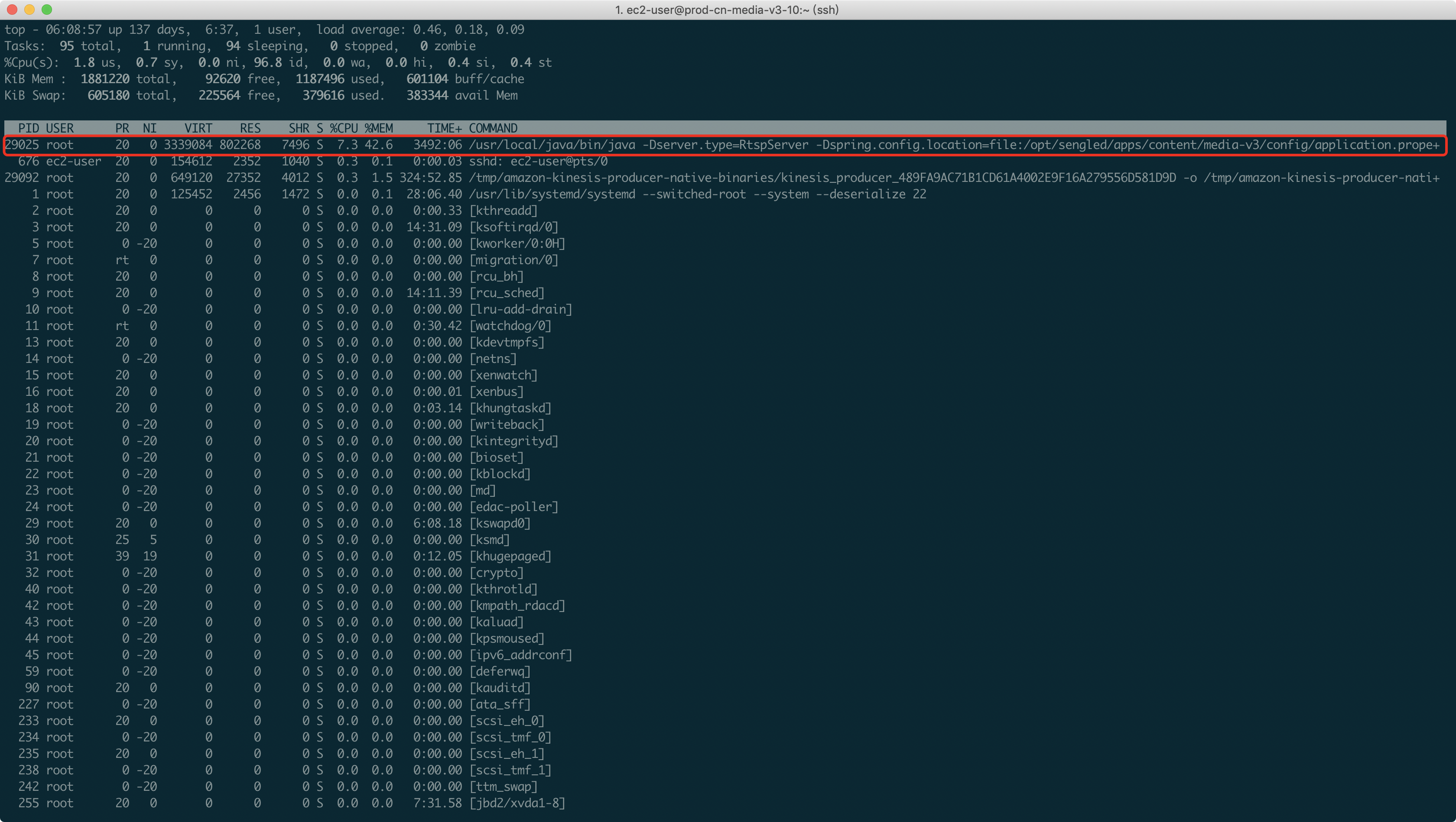 - top -Hp 29025 ,显示一个进程的线程运行信息列表