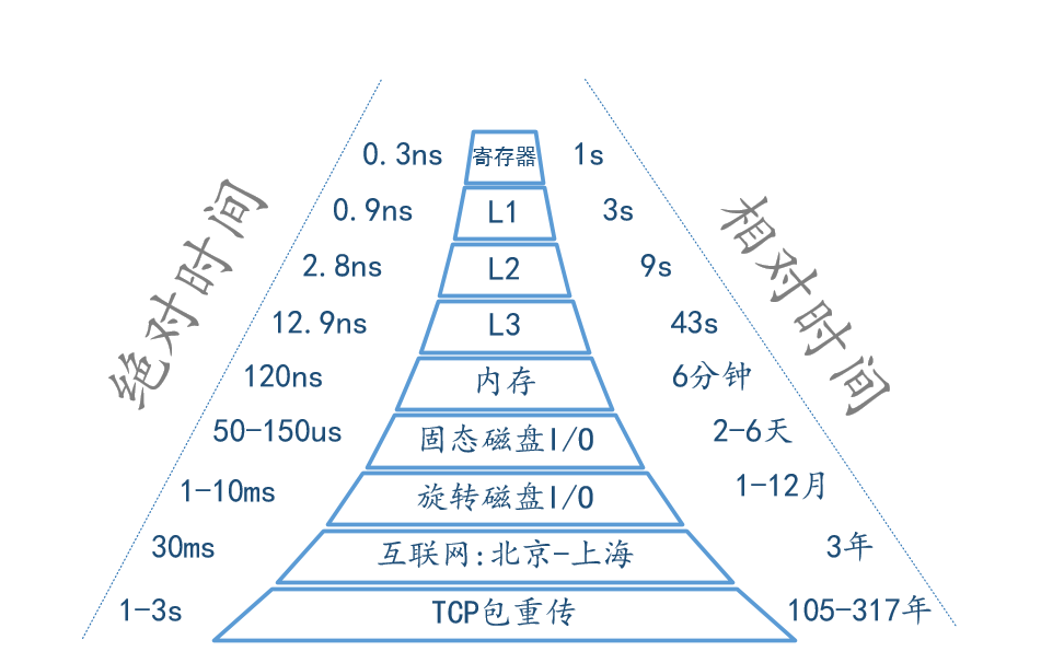| Read 1 MB sequentially from memory 从内存顺序读取1MB | 250,000 ns=0.25ms |